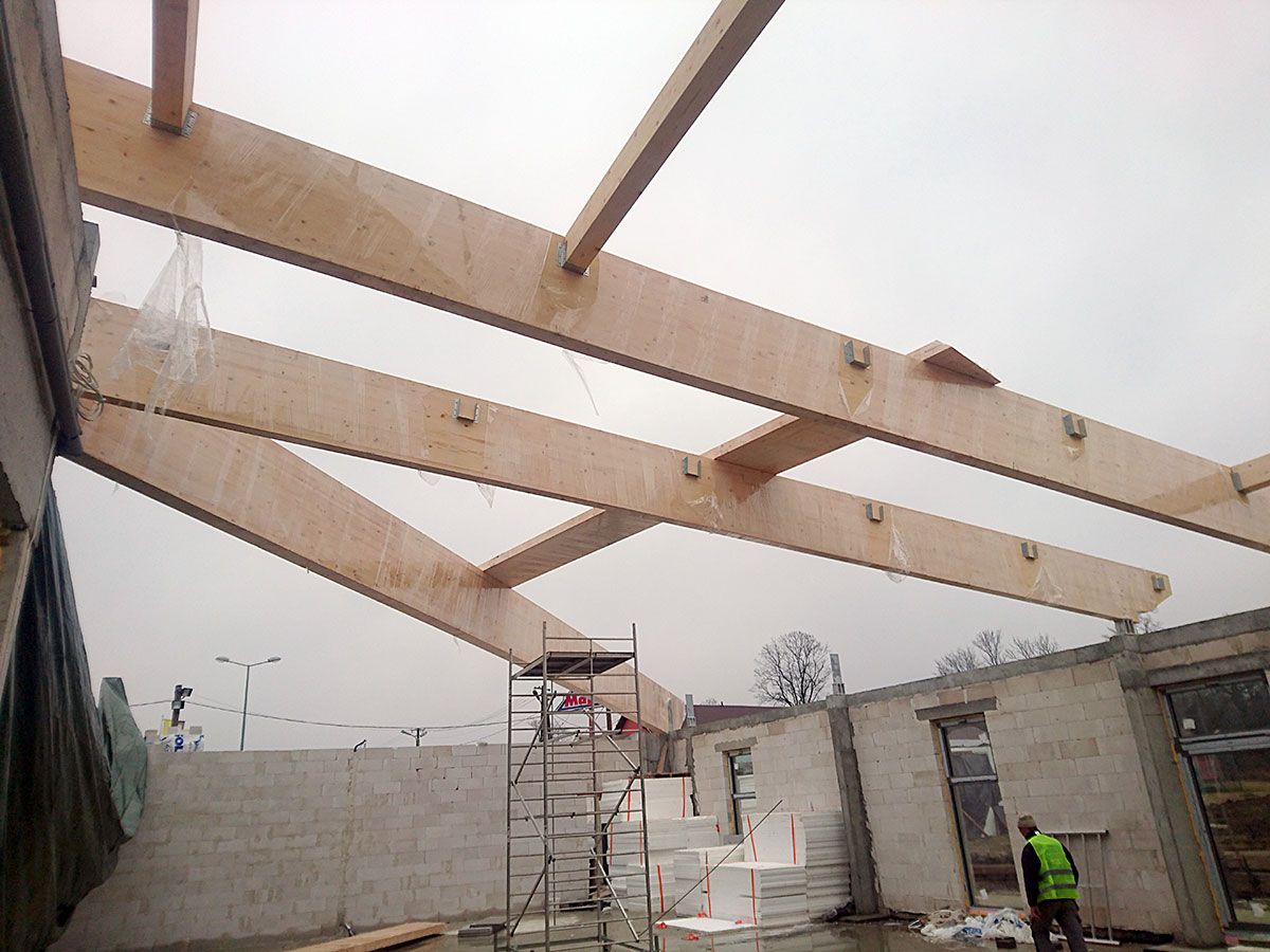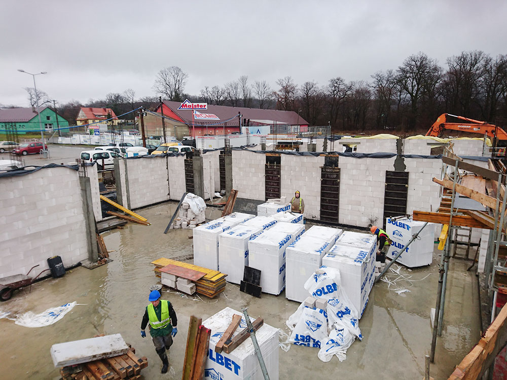 Przedmiotem inwestycji była budowa budynku handlowo - usługowego wraz z instalacjami wewnętrznymi, infrastrukturą techniczną oraz zagospodarowaniem terenu w Lesku.