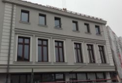 - rozbudowie budynku od strony zachodniej i południowej na pomieszczenia usługowe z dwoma lokalami mieszkalnymi wraz z instalacjami wewnętrznymi w budynku: elektryczna wod. - kan., gazowa, centralnego ogrzewania, wentylacji mechanicznej, klimatyzacji, instalacji c.t. i wody lodowej dla wentylacji oraz przyłączami: elektrycznym, wody, kan.- sanit., gazu, kan. deszczowej z przekładka wraz z separatorem produktów ropopochodnych, przebudowie nawierzchni utwardzonych z droga wewnętrzną i miejscami postojowymi dla samochodów osobowych, przebudowa zjazdów.
