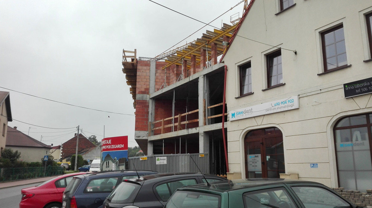 Przebudowa i rozbudowa budynku usługowego w Niepołomicach na budynek usługowy z dwoma lokalami mieszkalnymi wraz z instalacjami wewnętrznymi: wod-kan, co. gaz, elektryczne, wentylacja mechaniczna z klimatyzacja, wewnętrzna instalacja kanalizacji deszczowej, oświetlenie zewnętrzne budynku wraz z WLZ, z przyłączami: wody, kan. sanit., gazu, kan. deszczowej z przekładka wraz z separatorem produktów ropopochodnych, budowa i przebudowa dwóch zjazdów, budowa drogi wewnętrznej, dojść ( chodniki, place wewnętrzne ) i miejsc postojowych dla samochodów osobowych, muru oporowego. Rozbiórka budynku usługowego w Niepołomicach.
